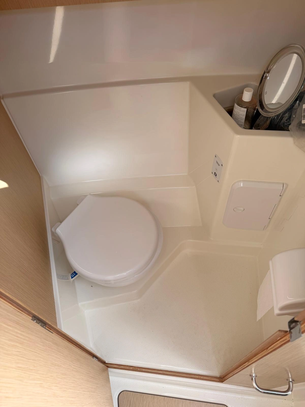 - Compartiment WC séparé équipé d'une toilette marine électrique